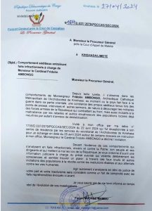 Flash Info Une information judiciaire contre le Cardinal Fridolin Ambongo, archevêque de Kinshasa pour « faux bruits, incitation à la révolte et attentats contre les vies humaines » ordonnée par le procureur général près la cours de cassation selon une correspondance adressée au procureur près la cour d’appel de Matete dont une copie est parvenue dimanche 28 février à la rédaction de Kinshasamagazine.cd Kinshasa Magazine 28/04/2024