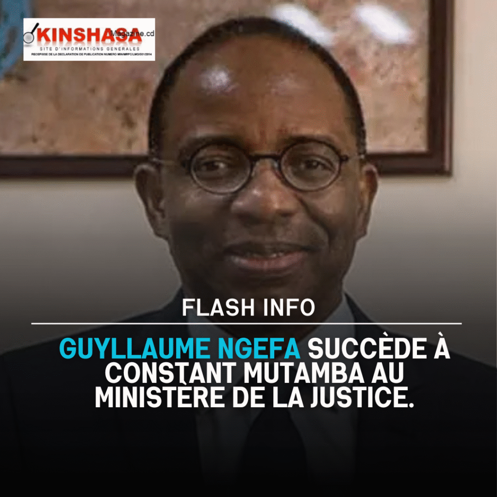 Flash Info Guyllaume Ngefa succède à Constant Mutamba au ministère de la justice. Kinshasa Magazine 22/08/2025 Continue Reading Précédent Presque tous les grands ténors de l’union sacrée ont été reconduits dans la nouvelle équipe gouvernementale composée de 53 membres.Suivant 10 ans de travaux forcés requis contre l’ancien ministre de la justice, Constant Mutamba jugé pour un présumé détournement des fonds publics. Le verdict de la cour de cassation attendu pour le 27 août. Plus d'Actualité Flash Info L’Angola propose au gouvernement congolais et aux rebelles du M23 d’observer le cessez-le-feu à partir de mercredi 18 février à midi. Kinshasa Magazine 13/02/2026 Flash Info Des dégâts matériels importants enregistrés après un incendie survenu mardi au poste frontière de Lufu toto dans le Kongo Central Kinshasa Magazine 13/02/2026 Flash Info Des ex-combattants Mobondo dotés de matériels nécessaires pour leur réinsertion sociale Kinshasa Magazine 13/02/2026 Flash Info La Monusco exige des garanties sécuritaires avant redéploiement de ses troupes à Uvira Kinshasa Magazine 13/02/2026 Laisser un commentaire Annuler la réponseVotre adresse e-mail ne sera pas publiée. Les champs obligatoires sont indiqués avec *Commentaire * Nom * E-mail * Site web Enregistrer mon nom, mon e-mail et mon site dans le navigateur pour mon prochain commentaire.