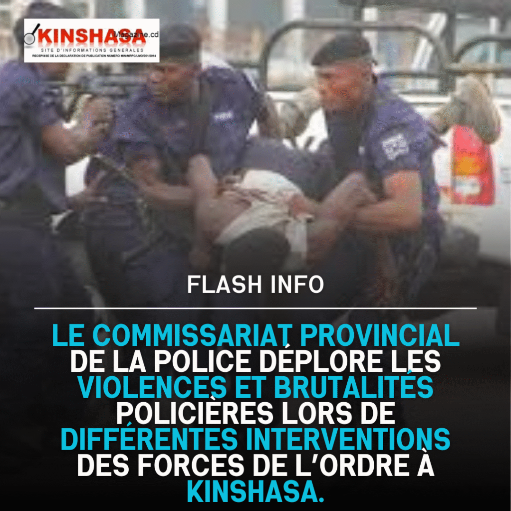 Flash Info Le commissariat provincial de la police déplore les violences et brutalités policières lors de différentes interventions des forces de l’ordre à Kinshasa. Kinshasa Magazine 22/08/2025 Continue Reading Précédent La ville de Kinshasa a connu le taux de criminalité le plus élevé au premier trimestre de l’année 2025.Suivant 36 suspects dont un soldat des Forces armées de la République démocratique du Congo et plusieurs biens saisis par la police lors d’une opération de bouclage menée dans 3 quartiers de Bunia, chef-lieu de la province de l’Ituri. Plus d'Actualité Flash Info L’Angola propose au gouvernement congolais et aux rebelles du M23 d’observer le cessez-le-feu à partir de mercredi 18 février à midi. Kinshasa Magazine 13/02/2026 Flash Info Des dégâts matériels importants enregistrés après un incendie survenu mardi au poste frontière de Lufu toto dans le Kongo Central Kinshasa Magazine 13/02/2026 Flash Info Des ex-combattants Mobondo dotés de matériels nécessaires pour leur réinsertion sociale Kinshasa Magazine 13/02/2026 Flash Info La Monusco exige des garanties sécuritaires avant redéploiement de ses troupes à Uvira Kinshasa Magazine 13/02/2026 Laisser un commentaire Annuler la réponseVotre adresse e-mail ne sera pas publiée. Les champs obligatoires sont indiqués avec *Commentaire * Nom * E-mail * Site web Enregistrer mon nom, mon e-mail et mon site dans le navigateur pour mon prochain commentaire.