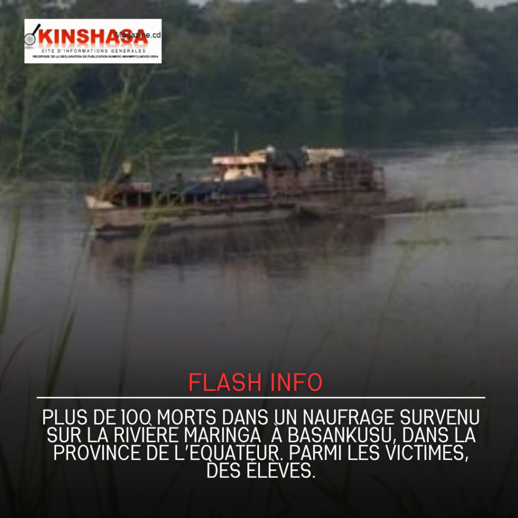 Flash Info Plus de 100 morts dans un naufrage survenu sur la rivière Maringa à Basankusu, dans la province de l’Equateur. Parmi les victimes, des élèves. Kinshasa Magazine 12/09/2025 Continue Reading Précédent Un nouveau carnage commis à Beni par les rebelles ougandais ADF. Au moins 80 civils tués et 14 maisons incendiées au village Ntoyo, dans le Nord-Kivu.Suivant Le verdict du procès contre l’ancien président Joseph Kabila renvoyé au 19 septembre. La haute cour militaire le poursuit pour trahison et soutien au mouvement rebelle AFC-M23. La peine de mort a été requise contre lui. Plus d'Actualité Flash Info L’Angola propose au gouvernement congolais et aux rebelles du M23 d’observer le cessez-le-feu à partir de mercredi 18 février à midi. Kinshasa Magazine 13/02/2026 Flash Info Des dégâts matériels importants enregistrés après un incendie survenu mardi au poste frontière de Lufu toto dans le Kongo Central Kinshasa Magazine 13/02/2026 Flash Info Des ex-combattants Mobondo dotés de matériels nécessaires pour leur réinsertion sociale Kinshasa Magazine 13/02/2026 Flash Info La Monusco exige des garanties sécuritaires avant redéploiement de ses troupes à Uvira Kinshasa Magazine 13/02/2026 Laisser un commentaire Annuler la réponseVotre adresse e-mail ne sera pas publiée. Les champs obligatoires sont indiqués avec *Commentaire * Nom * E-mail * Site web Enregistrer mon nom, mon e-mail et mon site dans le navigateur pour mon prochain commentaire.