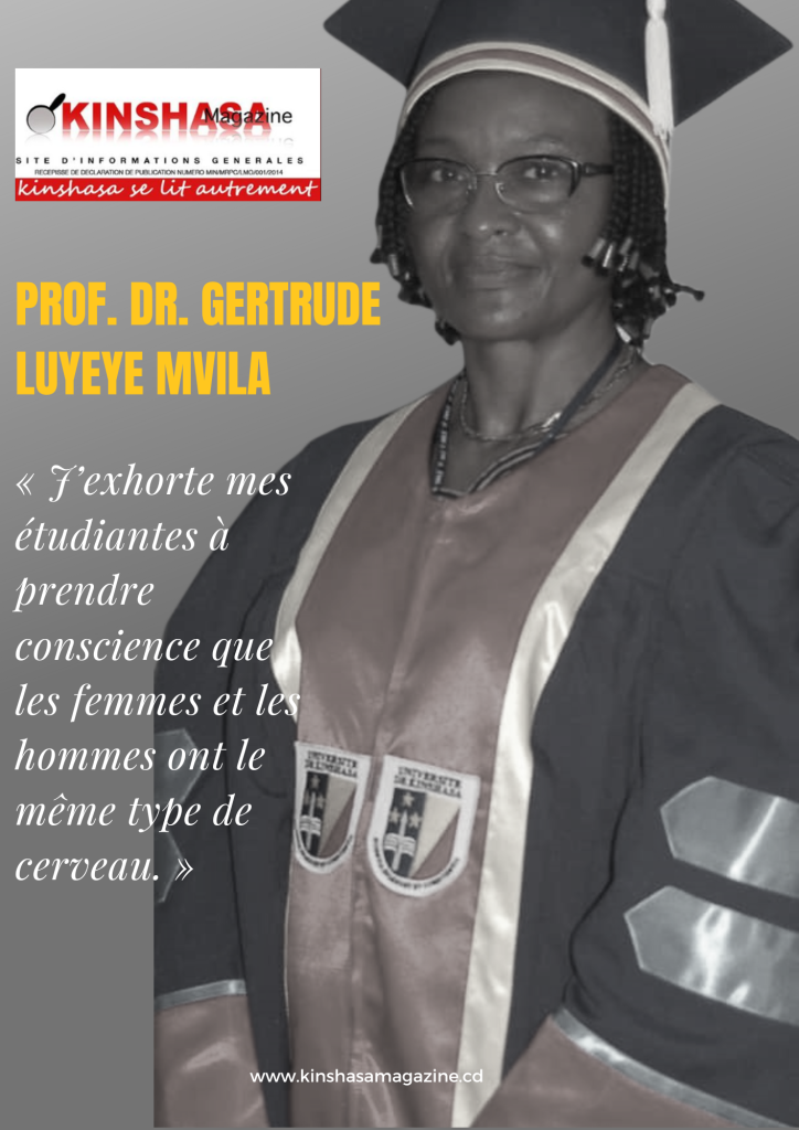 Le Professeur, Docteur Gertrude Luyeye Mvila , première femme radiologue et première femme Professeur de radiologie est spécialiste en Imagerie de la femme. Son domaine de prédilection l’a conduite à s’investir activement dans la lutte contre le cancer du sein et le cancer du col de l’utérus à travers l’ONG REPOS (Regard pour un sein sain). Elle s’est avec beaucoup d’humilité, promptement prêtée au jeu de question-réponse de Kinshasa Magazine au cours duquel elle plaide en faveur d’une représentativité paritaire à la tête des institutions notamment, des institutions médicales.